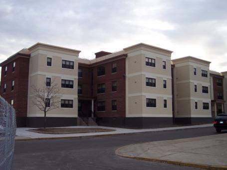 The Mystic River Apartments is a 10 building 240 unit housing authority complex located in Somerville, MA. The project included the addition of 240 pre-cast modular kitchen and bathroom structures to the exterior of the existing buildings, converting the flat brick buildings into a multi-dimensional complex. The modular units were erected in alignment with the existing kitchen and bathrooms that were demolished and converted into additional living space for the tenants. The integration of the structures included new foundations, new entrance stairs and canopies, renovated interior spaces, utility upgrades, new roofs and a pre-cast concrete parapet around the entire perimeter of the roof enhancing the overall look of the building.Boston Building & Bridge Corp. performed the work on an occupied site in (5) phases. Once each building was completed the tenants were moved in and the vacated buildings were renovated. The Somerville Housing Authority’s project is considered the pilot program for future state subsidized housing modernizations.